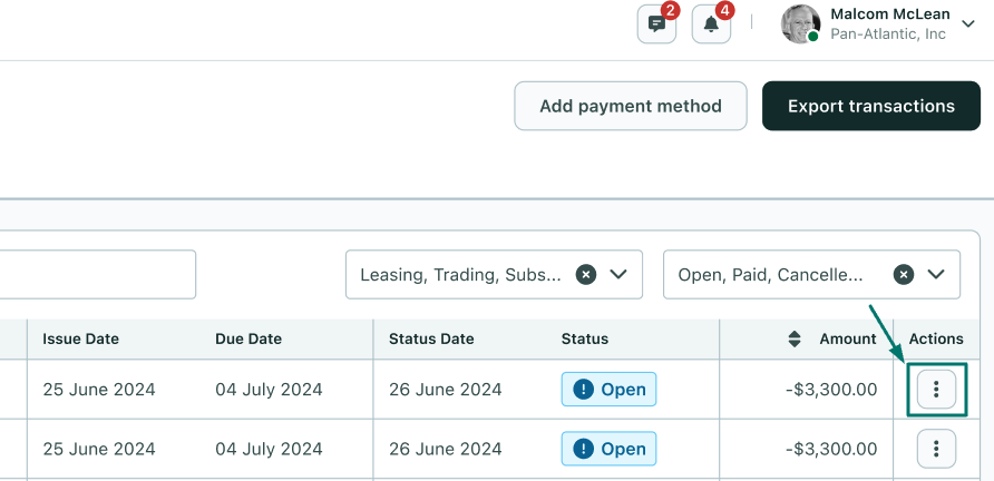 - You can check your open invoices here by selecting the Open status ⬇️