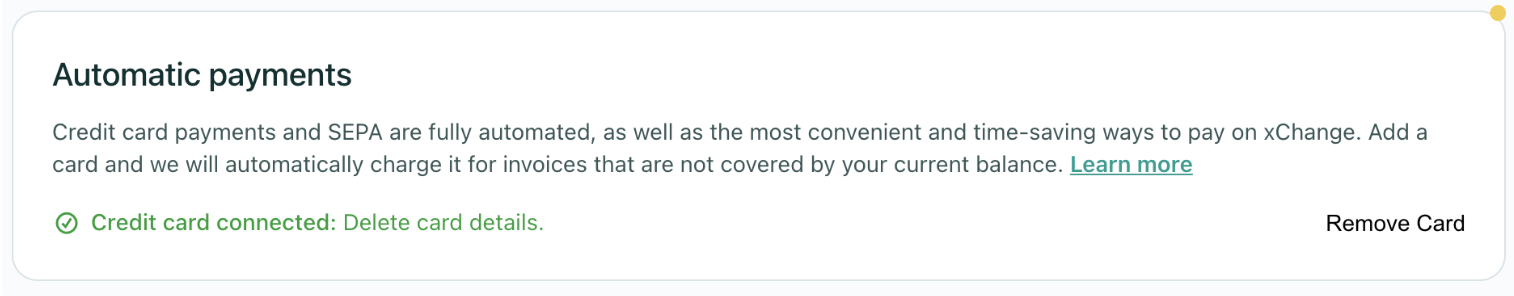 Credit card payment is the easiest and most convenient way to pay invoices on xChange. To add your credit card, go to the xChange Wallet by opening the menu on the left side of the page.