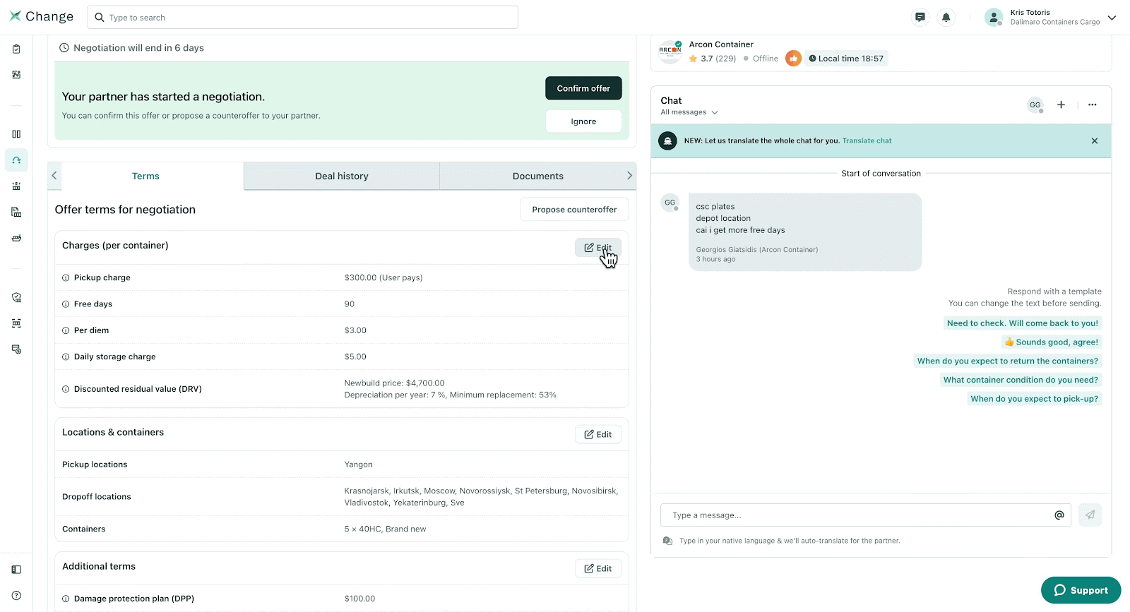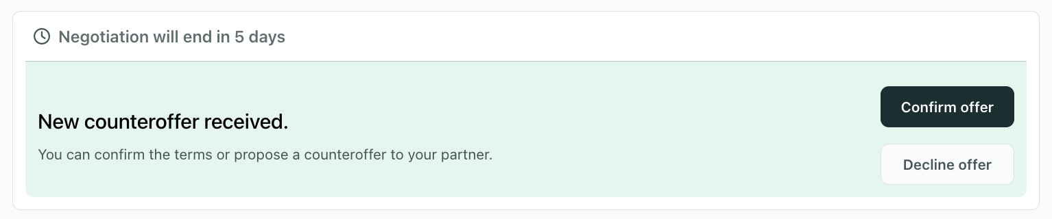 In the pop-up, you can update the relevant terms and then send the offer to your partner by clicking on Send Counteroffer