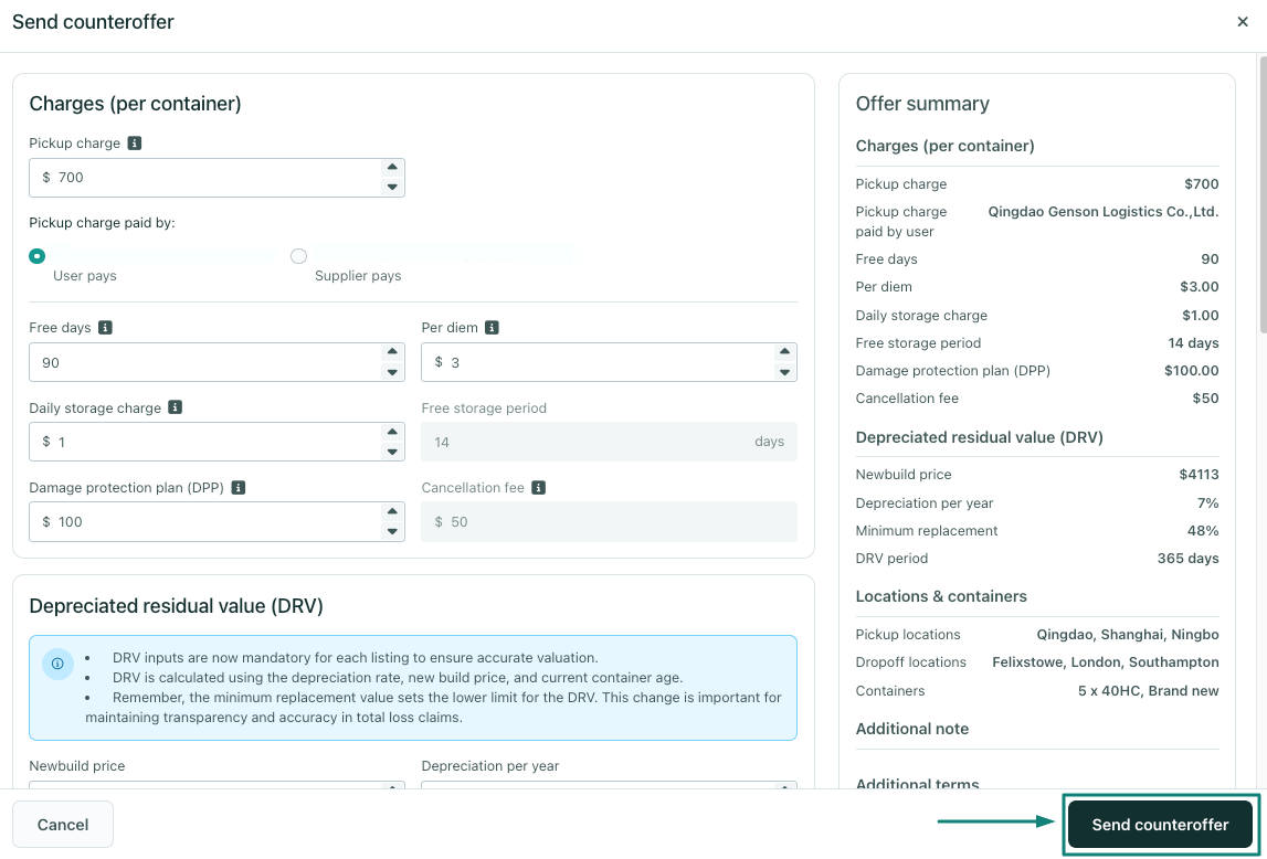 - Once you have made the desired amendments, you can send your counteroffer to your partner as shown below: