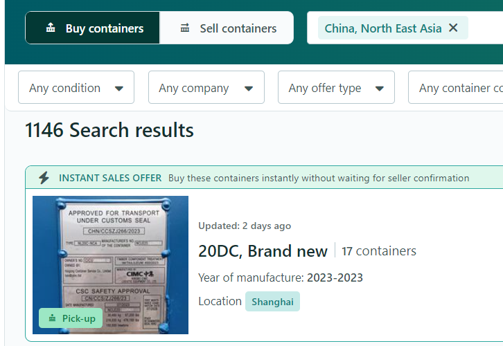 有了即时销售的功能,集装箱的交易速度就快多了。事实上,某些卖家在发布报价的当天就成功卖出了集装箱。